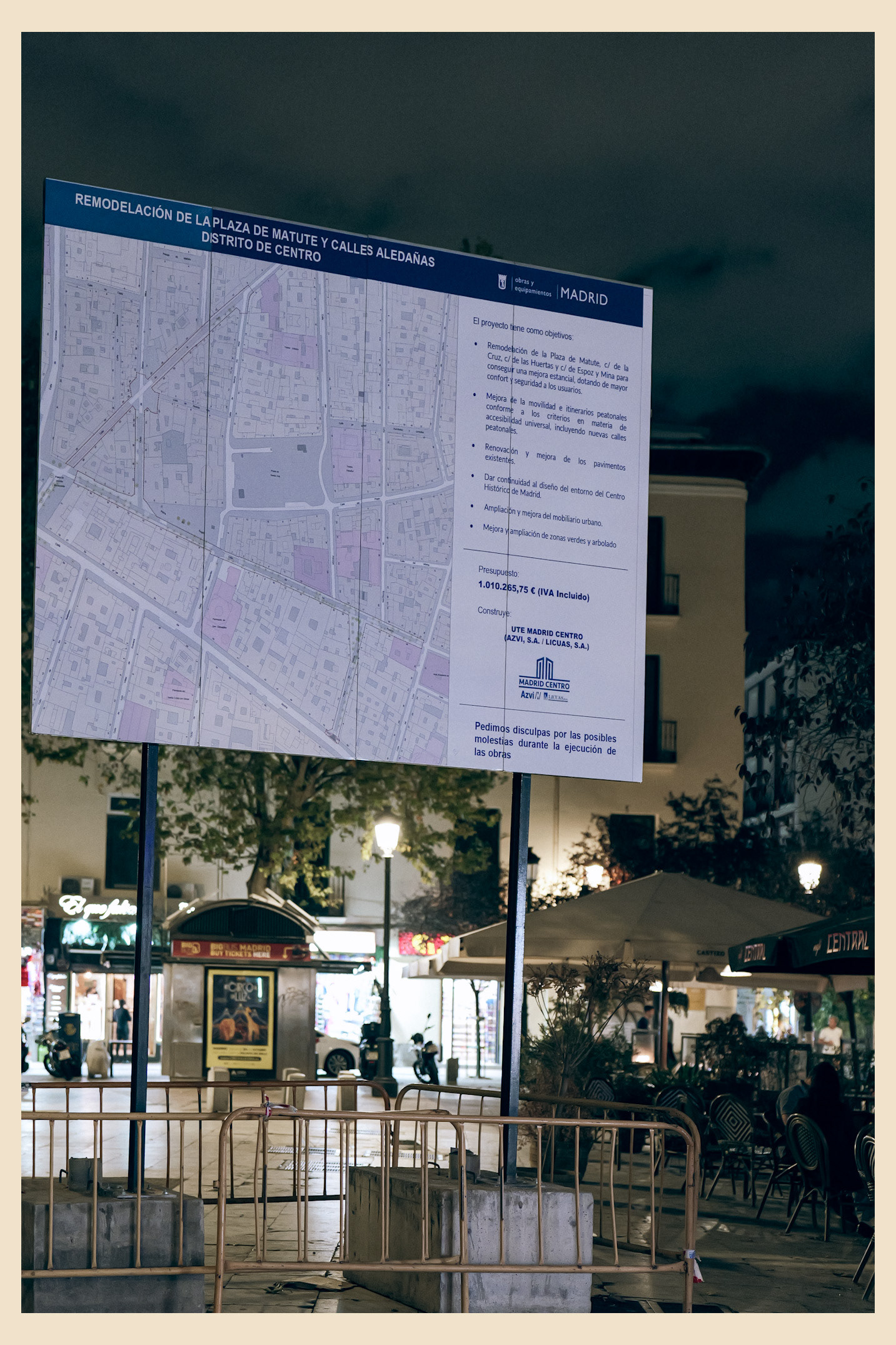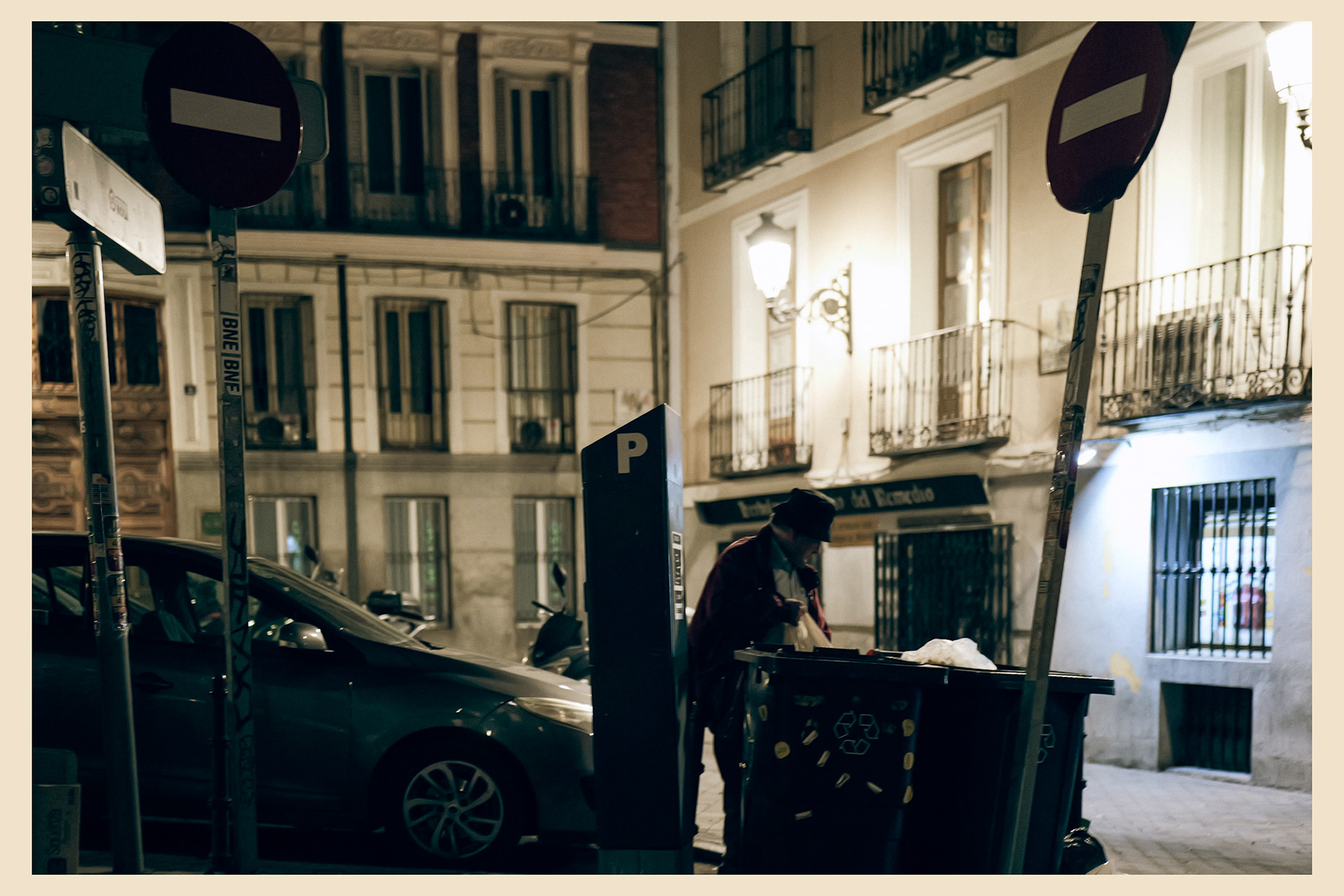 ESPAÑOL Nueva serie tomada en el corazón de Madrid — Tirso de Molina, Cascorro y Santa Ana — donde la ciudad muestra su cara más árida y desorientada. Plazas revestidas de piedra dura, obras sin sentido, cipreses moribundos y muros que parecen resistir al abandono. Un retrato de la deriva urbana madrileña: espacios que olvidaron a las personas y se llenaron de ruido, cemento y polvo. Fotografiado con la Lumix y un 50 mm, con estética de película antigua, tonos verdosos y grano sutil, evocando el desgaste físico y emocional del centro. ENGLISH New series shot in the heart of Madrid — Tirso de Molina, Cascorro, and Santa Ana — where the city reveals its driest, most disoriented face. Stone-paved squares, senseless works, dying cypresses, and walls clinging to existence. A portrait of Madrid’s urban drift: spaces that forgot people and filled with noise, concrete, and dust. Shot with a Lumix and 50 mm lens, with an old film mood, greenish tones, and subtle grain evoking the city’s physical and emotional decay.